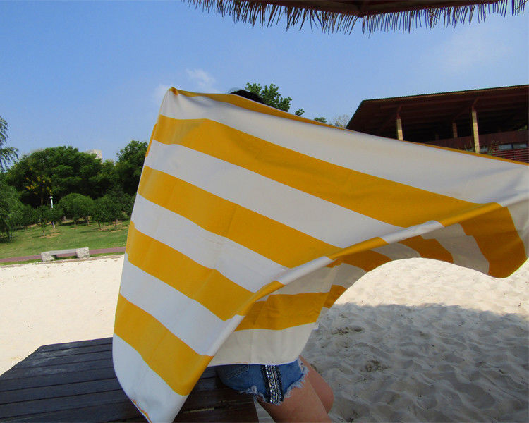 स्वनिर्धारित ब्रांड रेत मुक्त माइक्रोफाइबर स्ट्राइप्स मेष बैग के साथ मुद्रित तौलिया