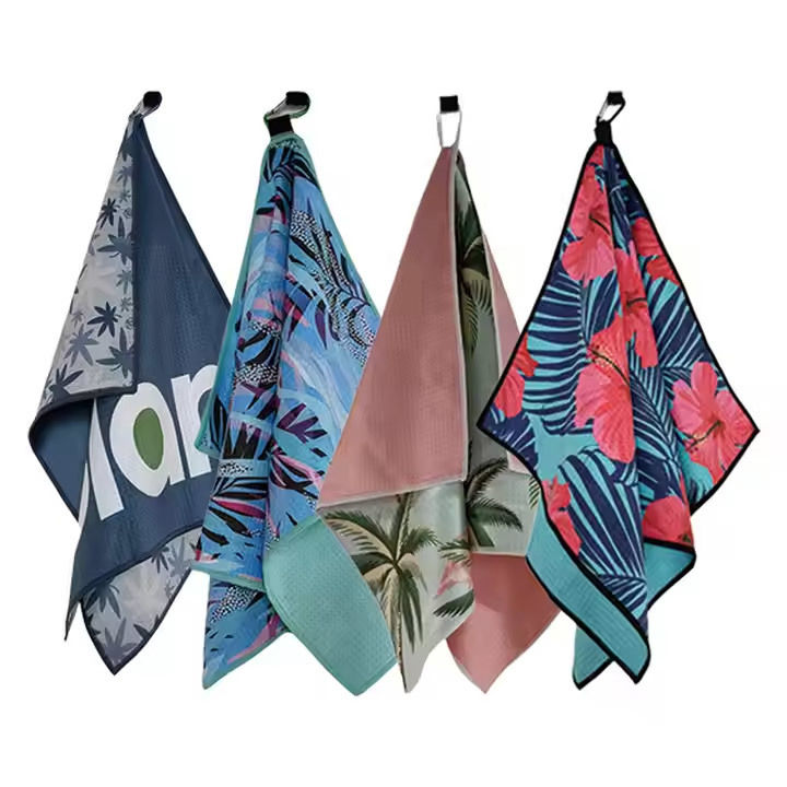 माइक्रोफाइबर गोल्फ तौलिया की सतह पर घुमावदार और उत्तल मधुमक्खी के छिलके की बनावट (वाफेल) सतह के क्षेत्रफल को और बढ़ाता है, पानी अवशोषण दक्षता में सुधार करता है,और जल्दी से क्लब या त्वचा पर पसीना पोंछता है.